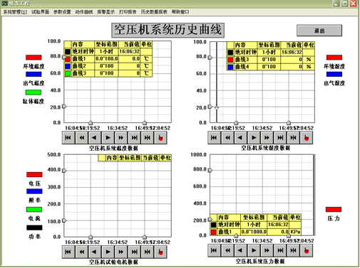 3) Test of exhaust temperature and exhaust humidity of air compressor: The temperature and humidity of the dryer exhaust port are measured by the temperature and humidity sensors.