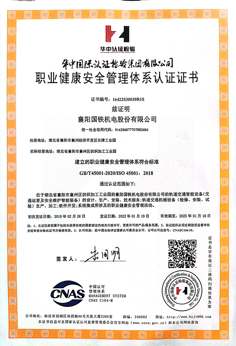 職業(yè)健康安全管理體系認(rèn)證證書