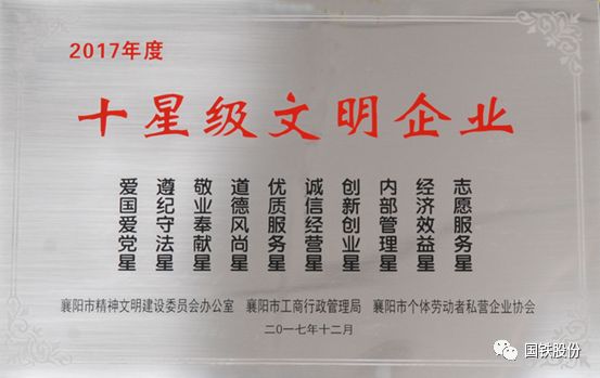 襄陽國鐵榮獲2017年度“十星級(jí)文明企業(yè)”
