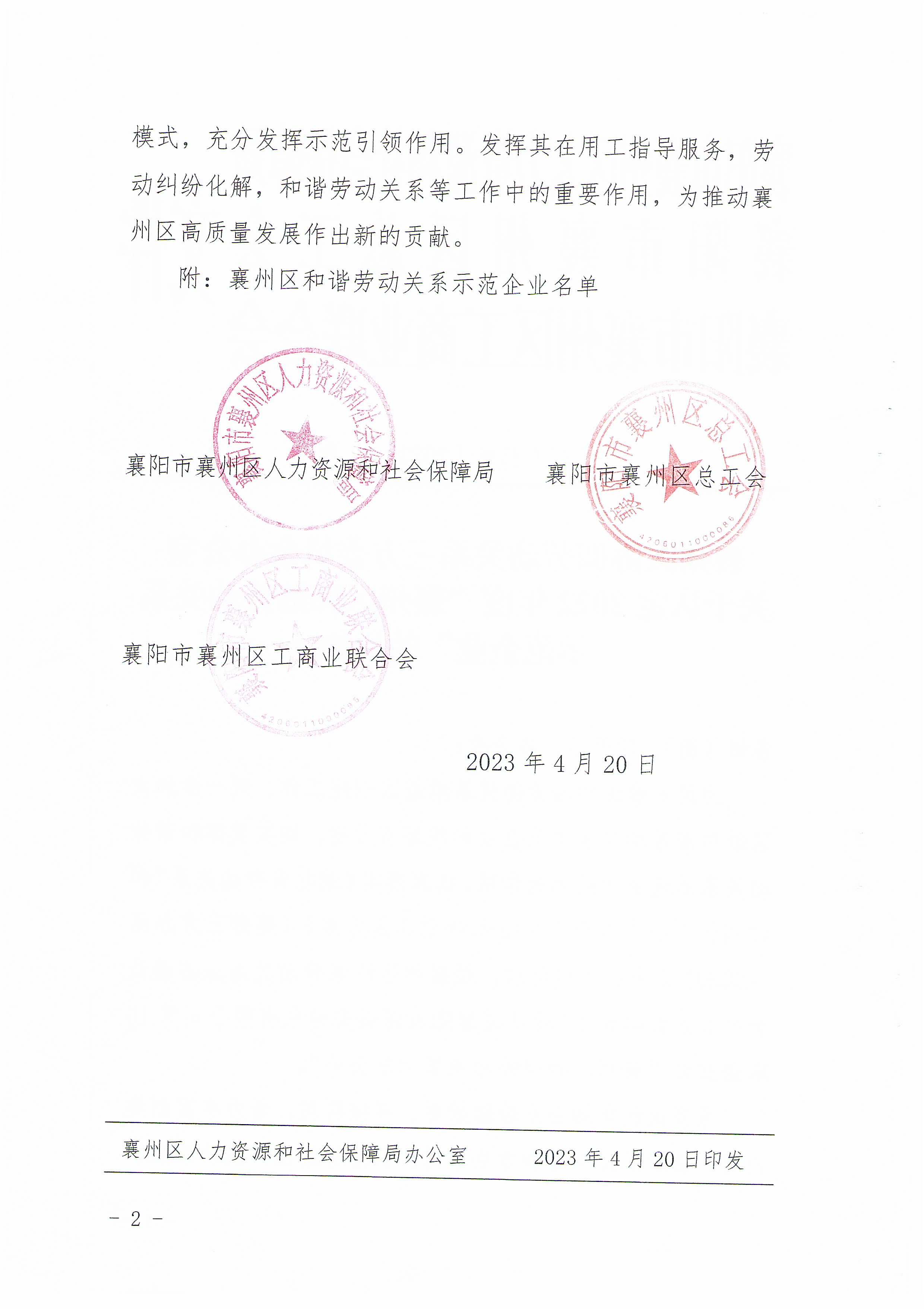 國(guó)鐵機(jī)電獲“襄州區(qū)和諧勞動(dòng)關(guān)系示范企業(yè)”榮譽(yù)