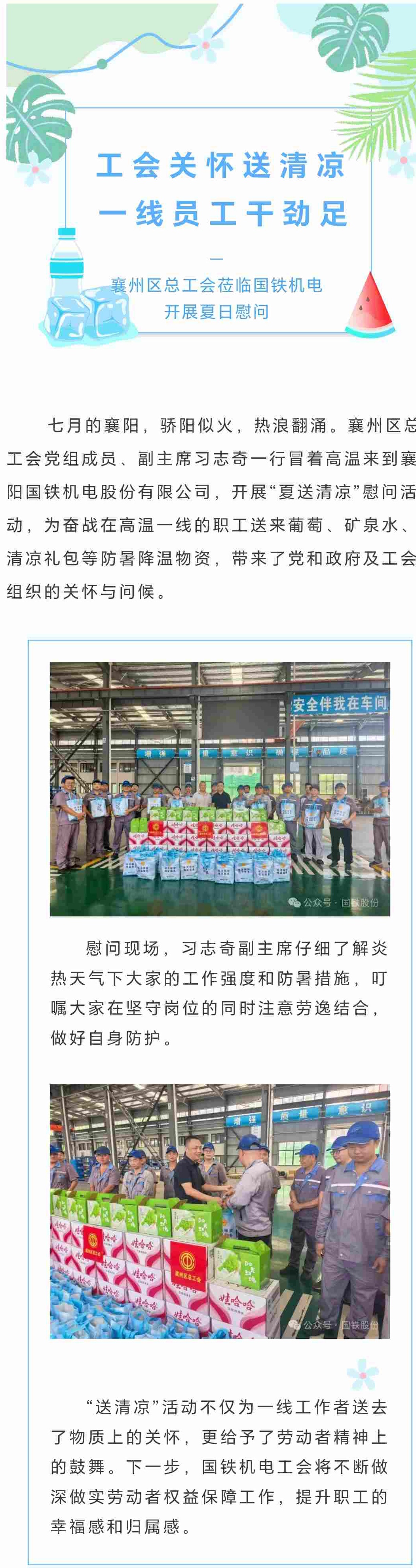 夏日送清涼 關(guān)愛沁人心!襄州區(qū)總工會蒞臨國鐵機(jī)電開展夏日慰問